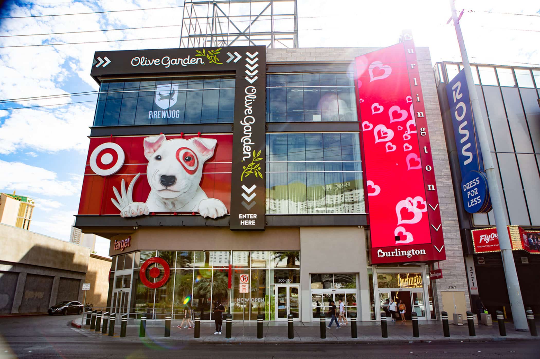 3767 South Las Vegas Boulevard, purchased in 2017, is the most recently developed property in the Showcase portfolio—a 150,000-square-foot retail center completed in 2020. It introduces first-ever Strip locations for major tenants including Target, Burlington, Olive Garden, BrewDog, and Chevy’s. Target ranks among the top-performing stores in its City format, while BrewDog, a UK-based craft beer brand, brings unique energy with a fully activated third floor and rooftop. As the newest addition, this modern space blends high-demand national anchors with immersive retail experiences.